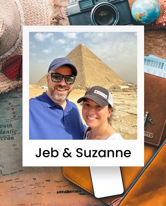 “Coming up with the idea is probably the hardest for two reasons,” Jeb says. “First of all, the creativity side of this challenge. It’s rewarding, but challenging. And then the other thing is making these trips all fit together. The airline schedule, the hotel availability, we try to use credit card points. So that’s another factor that layers into the complexity of these things, which is really where Suzanne shines. These are complicated problems she’s solving.”